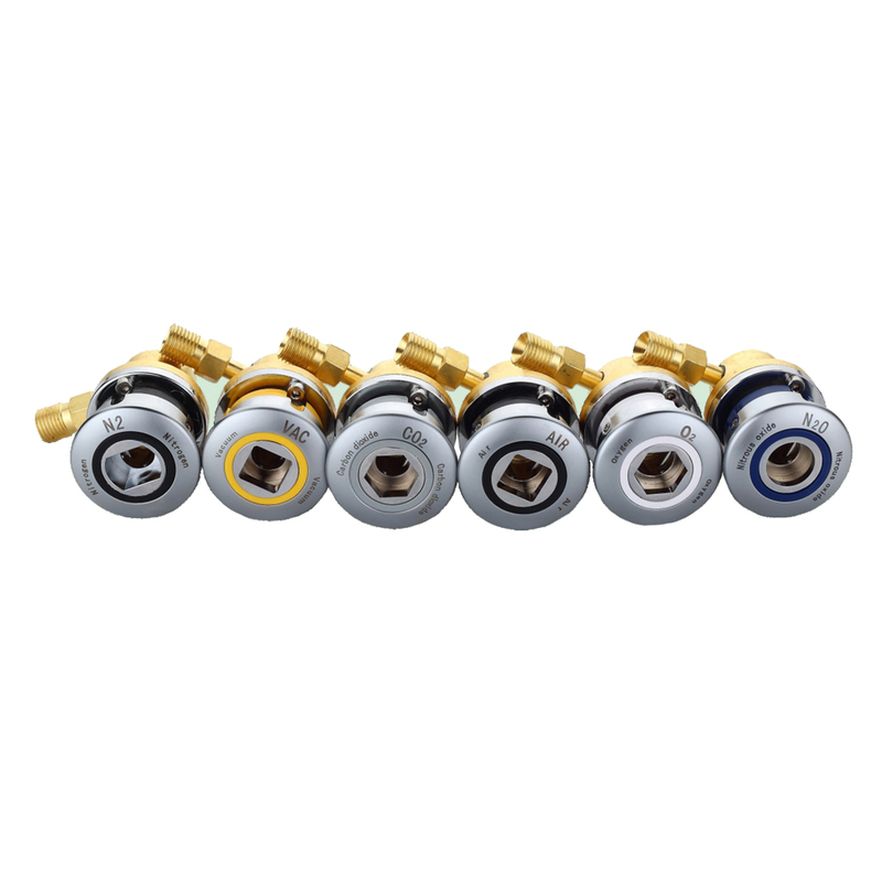 - Color-coded for easy gas identification